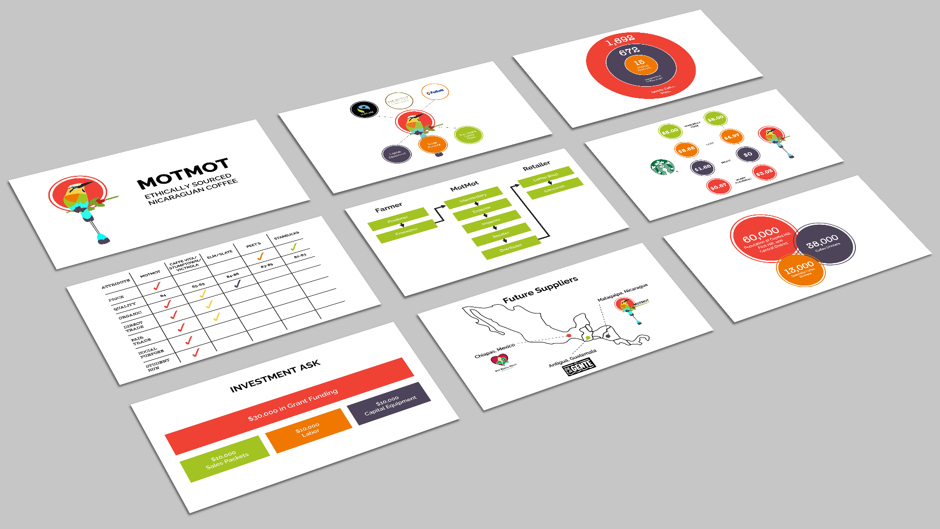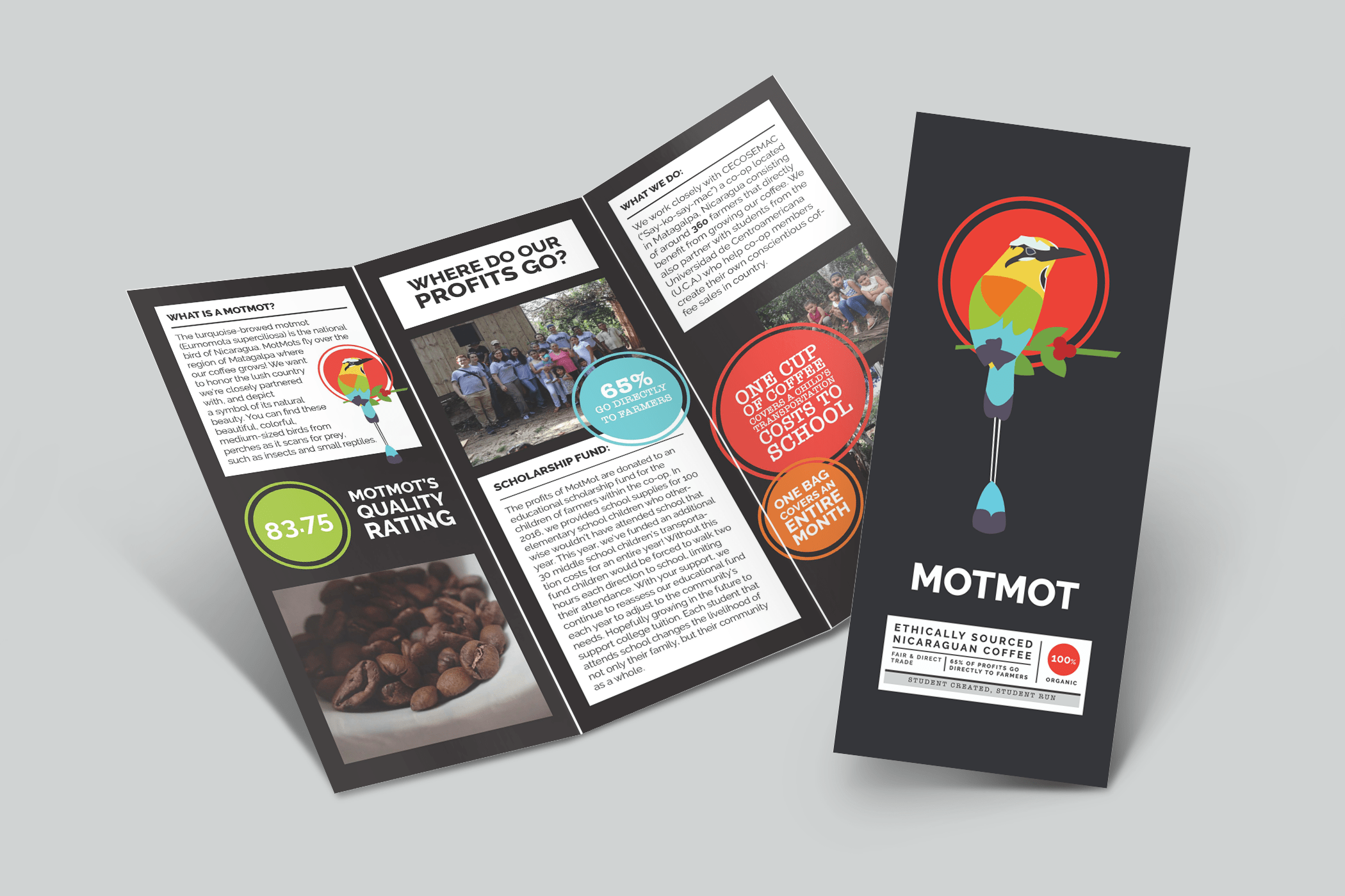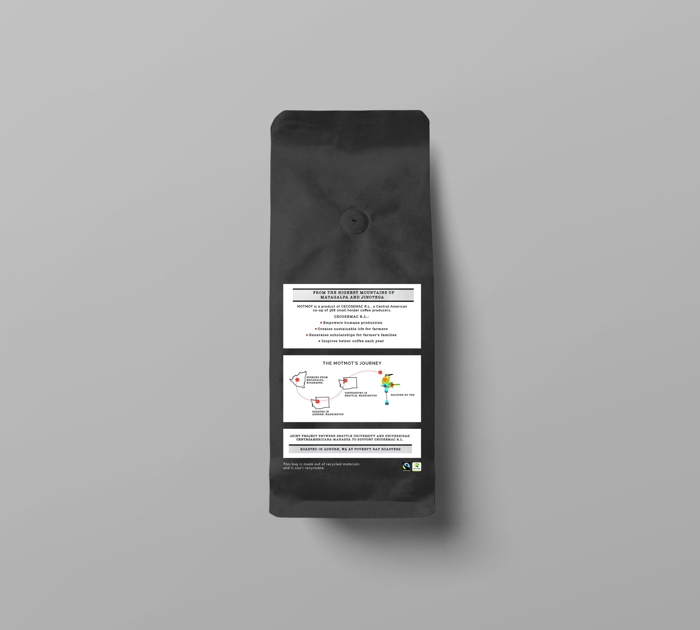 MotMot Coffee is led and run by students at Seattle University’s Albers School of Business and Economics. MotMot reached out to me and my student-run design agency in 2016 to craft their brand identity and to design all of their packaging and marketing materials. An iteration of my logo is still used today.